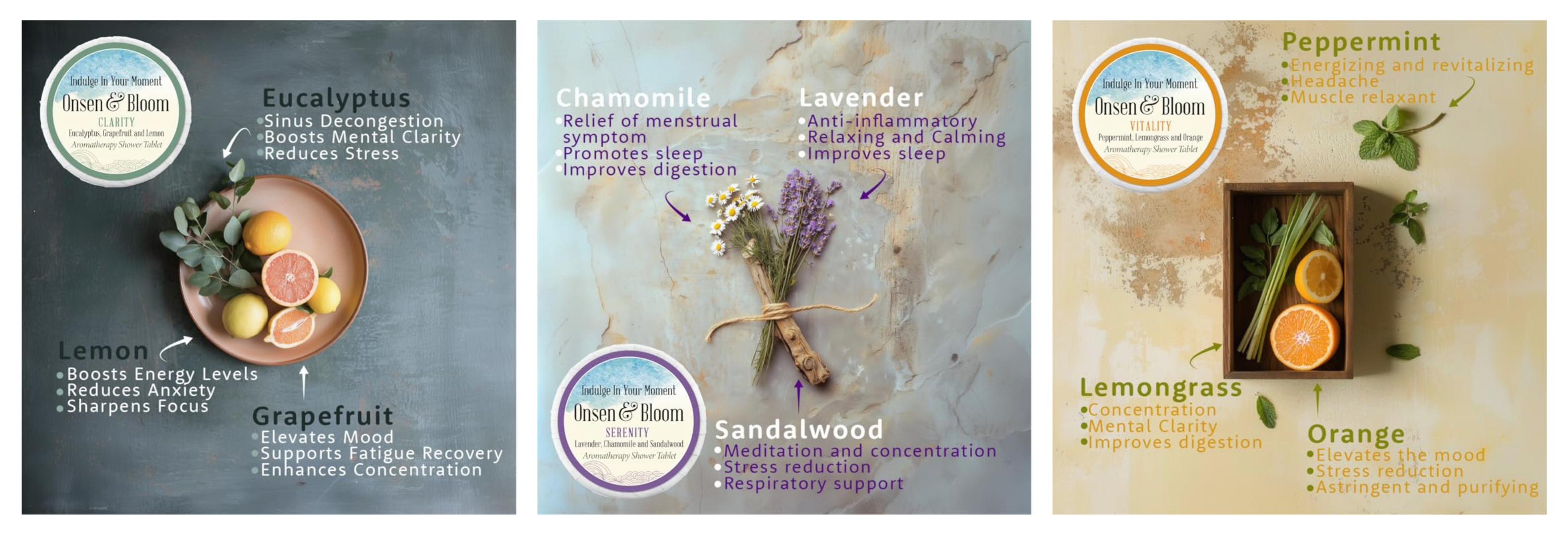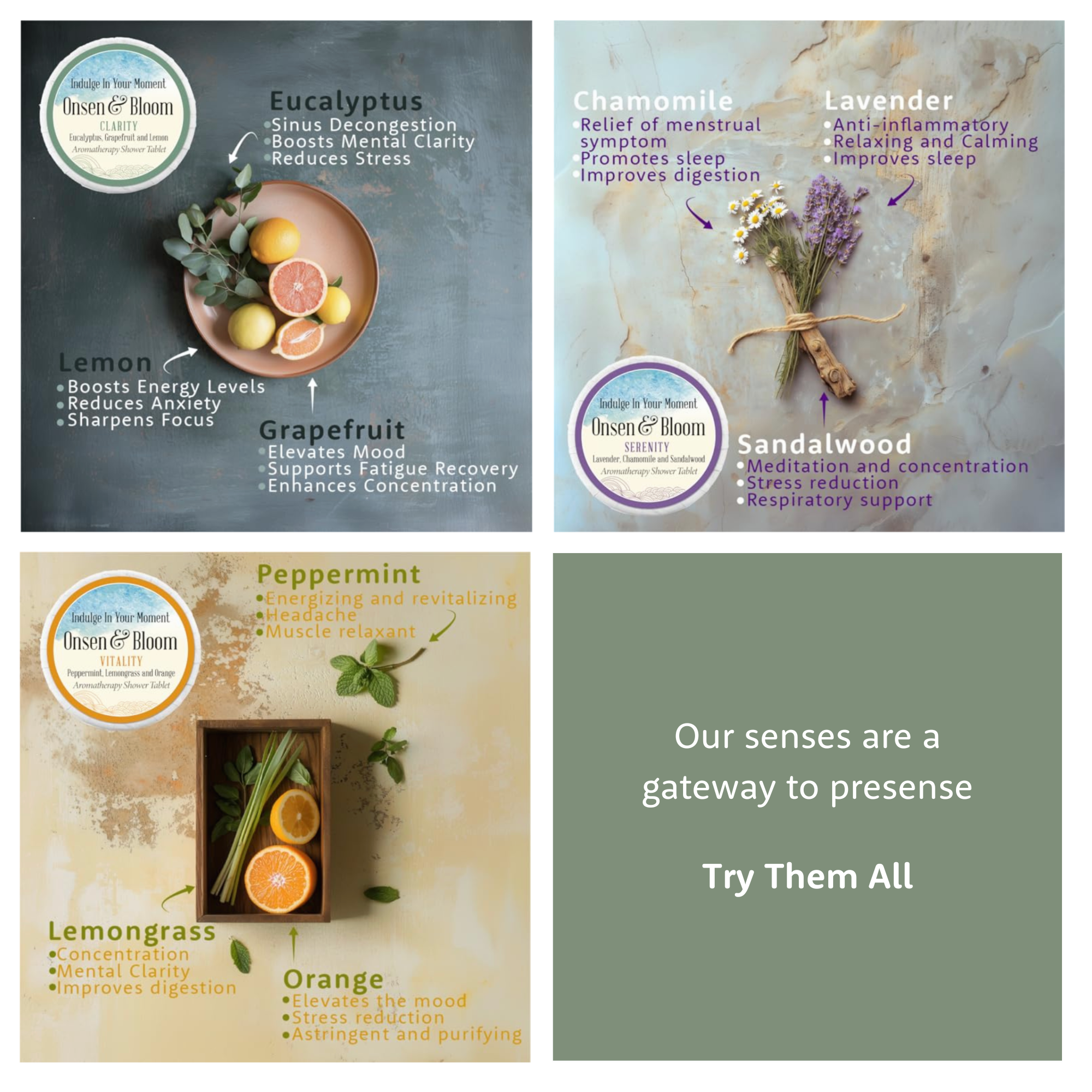 Start your day invigorated with our Vitality shower steamers, or unwind after a busy day with our Serenity scents.