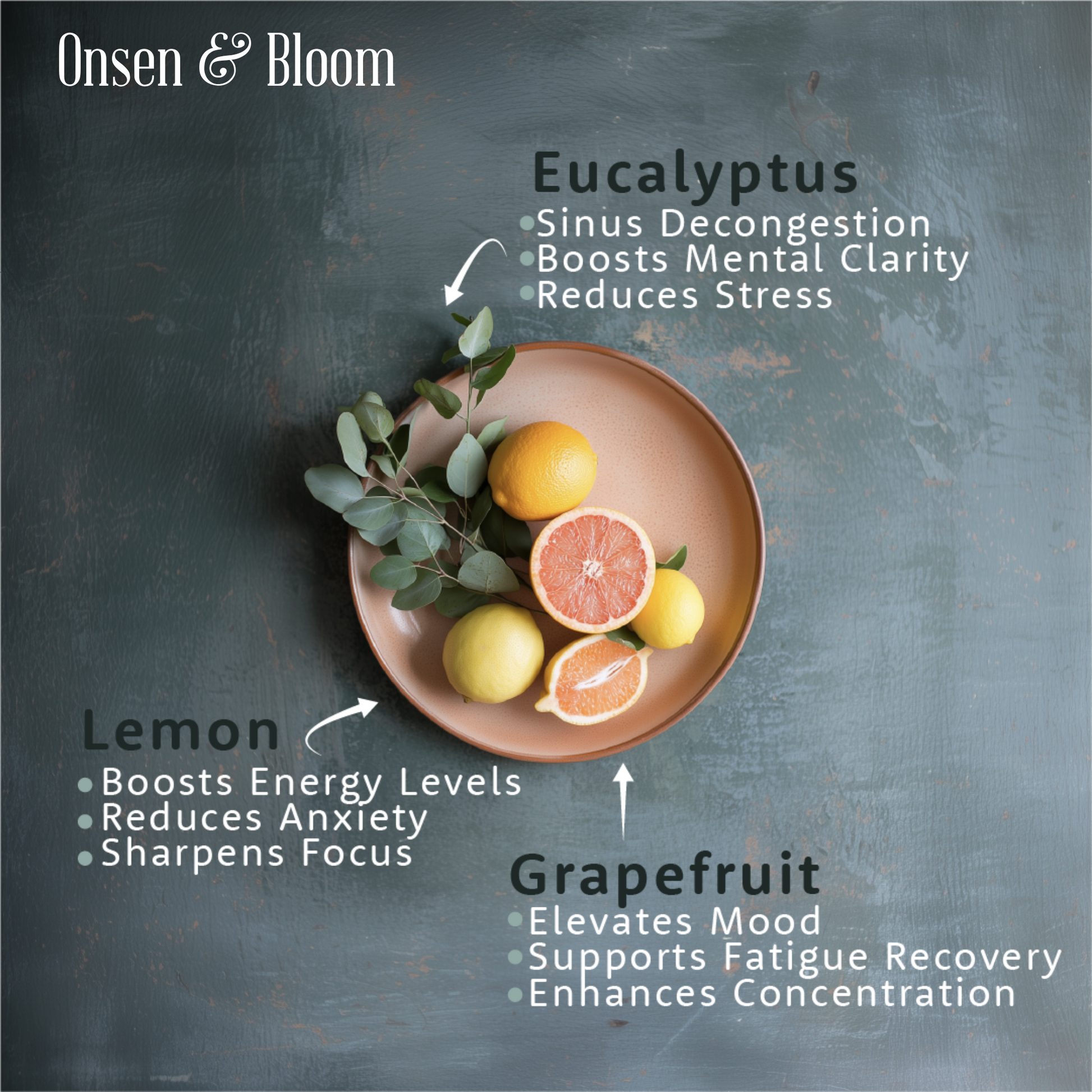 Eucalyptus, Grapefruit and Lemon are a great way to promote mental clarity and sinus relief at any point in your day. The ingredients in this blend are known to support the immune system and enhance moods.