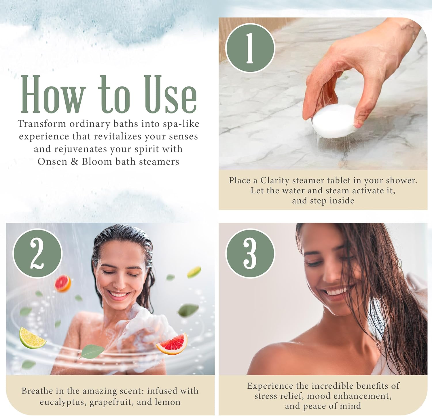 CLARITY Shower Steamers - Eucalyptus, Grapefruit and Lemon - 15 Pack